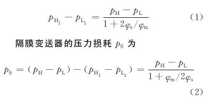 設這時高壓側和低壓側測量膜片受到的壓力分別為pH1和pL1,φs和φm分別是隔膜和測量膜片的剛度。測量膜片處的壓差可通過下式計算: