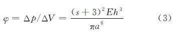 式中:ΔV———膜片體積的變化量;E———膜片縱彈性系數;a———膜片直徑;h———膜片厚度;s———膜片位移。