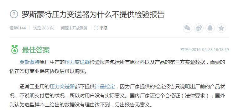 1、羅斯蒙特壓力變送器為什么不提供檢驗(yàn)報(bào)告?