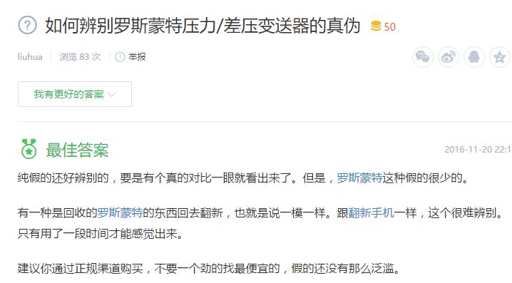 2、如何辨別羅斯蒙特壓力/差壓變送器的真?zhèn)危?/strong>
