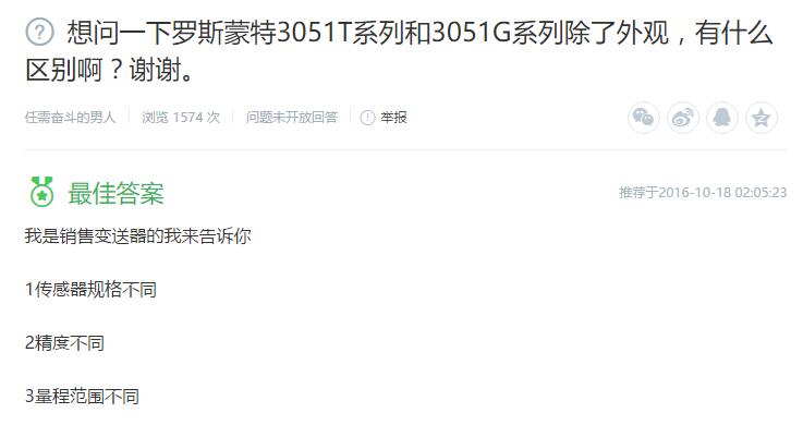 2、想問一下羅斯蒙特3051T系列和3051G系列除了外觀,有什么區別啊?謝謝。