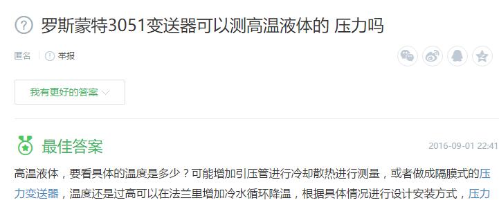1、羅斯蒙特3051變送器可以測高溫液體的 壓力嗎?