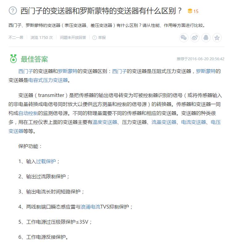 1、西門子的變送器和羅斯蒙特的變送器有什么區別?(西門子、羅斯蒙特的變送器(表壓變送器、差壓變送器)有什么區別?請從性能、作用等方面進行比較。)