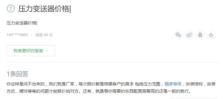客戶(hù)提問(wèn)(3):壓力變送器大概在什么價(jià)位?