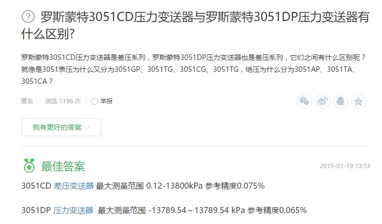 1、羅斯蒙特3051CD壓力變送器與羅斯蒙特3051DP壓力變送器有什么區別?(羅斯蒙特3051CD壓力變送器是差壓系列,羅斯蒙特3051DP壓力變送器也是差壓系列,它們之間有什么區別呢? 就像是3051表壓為什么又分為3051GP、3051TG、3051CG、3051TG,絕壓為什么分為3051AP、3051TA、3051CA?)