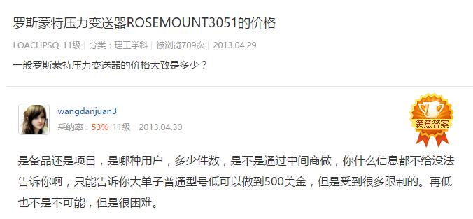 3、羅斯蒙特壓力變送器ROSEMOUNT3051的價格(一般羅斯蒙特壓力變送器的價格大致是多少?)